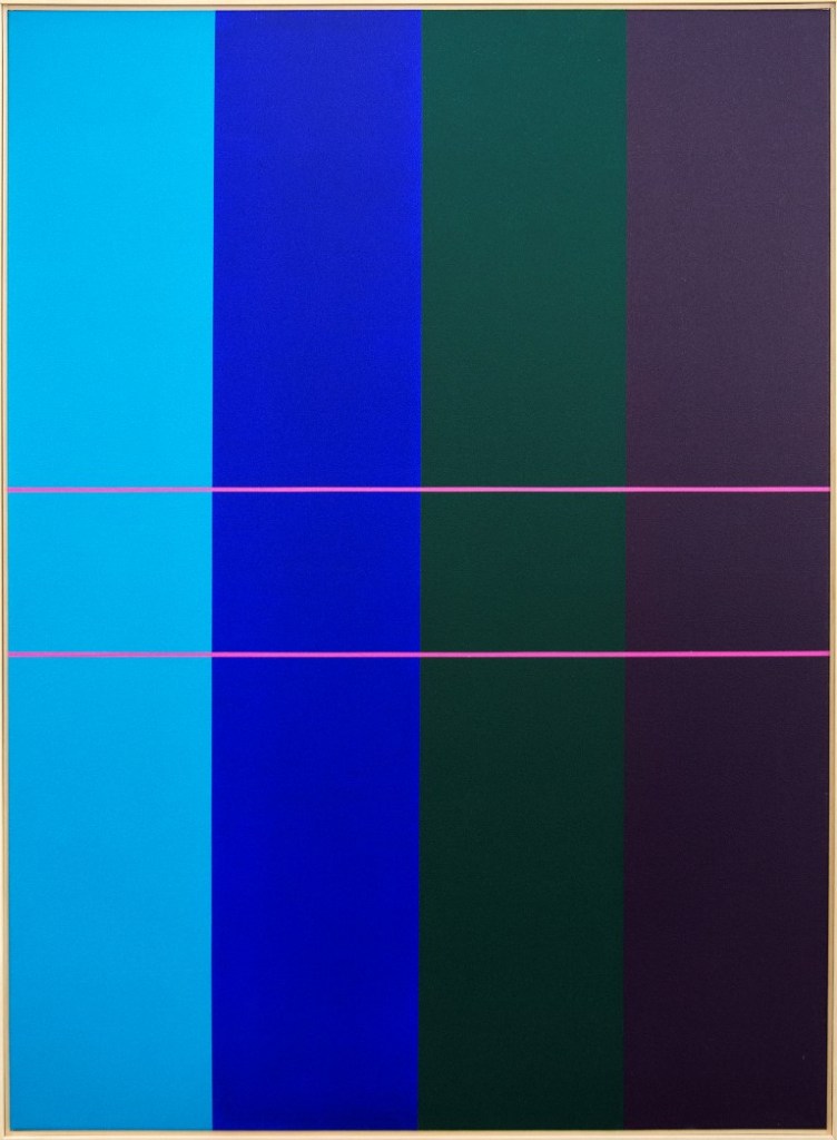 Heaven (2017), acrylic on canvas, 48″ x 36″ Twelve Panels, Thirty-Six Colours (2016), acrylic on birch panel, 43″ x 111″Violet Grid (2015), acrylic on canvas, 24″ x 24″